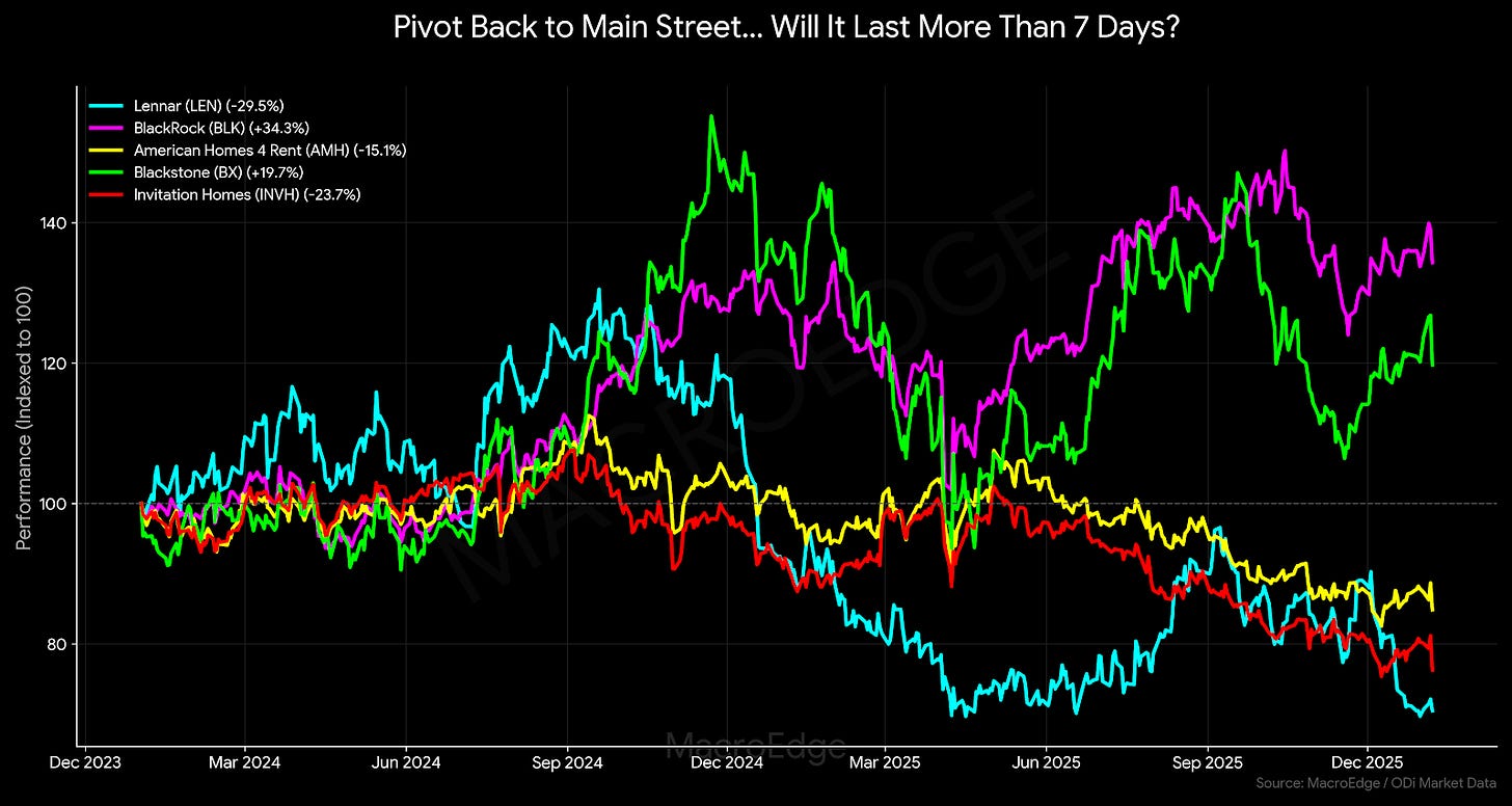 The last two trading days, we’ve observed a minor shift in language and rhetoric as it pertains to ‘Main Street’. The Administration has done things like sink institutional single-family homebuyer stocks on news of a potential ban of these buyers from the single-family home market, and tank defense stocks on potential buyback bans, salary caps, and more. Bessent has also been very quiet over the last two weeks, with far fewer TV appearances, and this could be part of a midterm strategy to boost popularity (along with things like the Maduro raid) though they could be very short lived if it begins to spook equity markets. While there’s talk about Main Street, the Administration still has one of its largest priorities as the stock market, with the President discussing all-time highs and equity prices frequently.