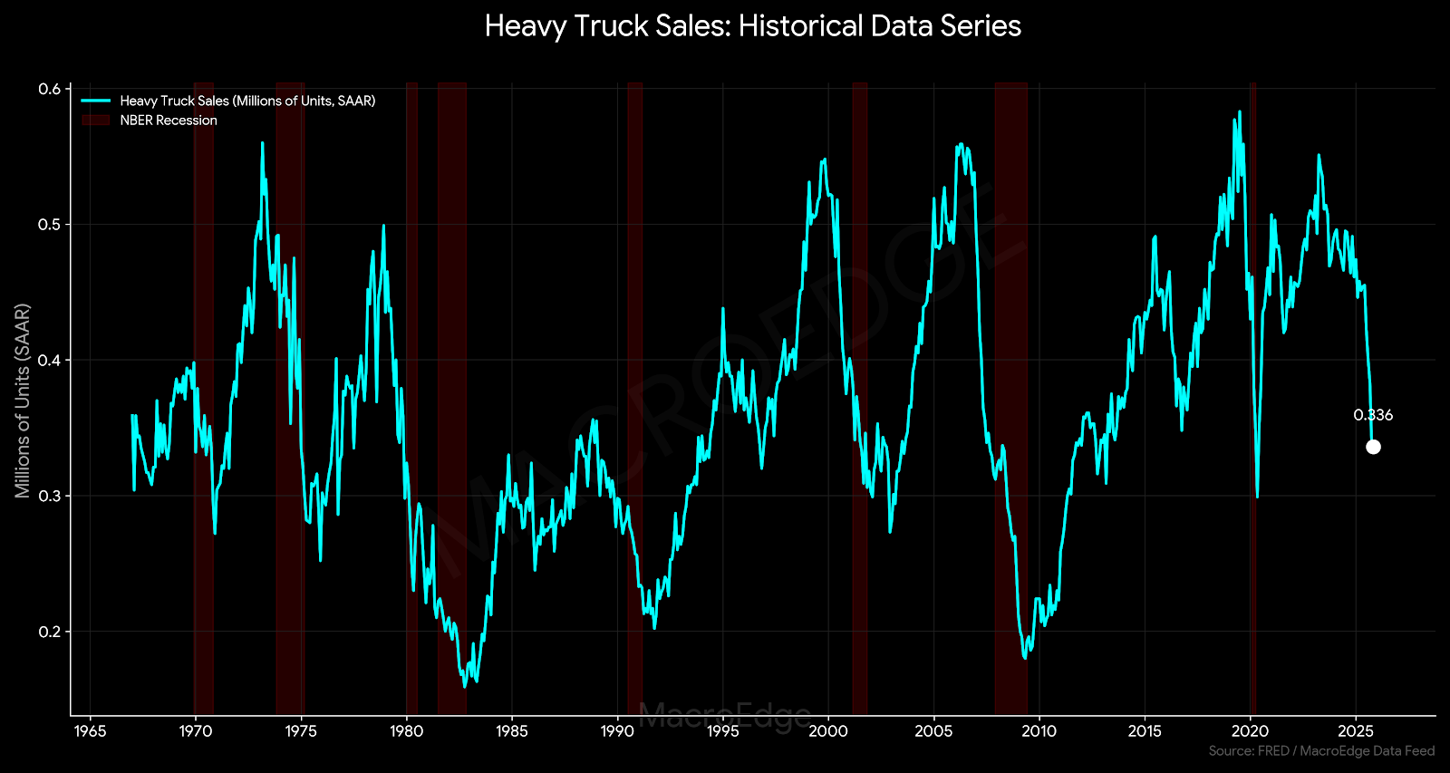 One of the more reliable leading indicators in the *old* days from a macro standpoint, though trucking equities have continued to move higher - and this figure likely rebounded in December based on heavy truck sales data.