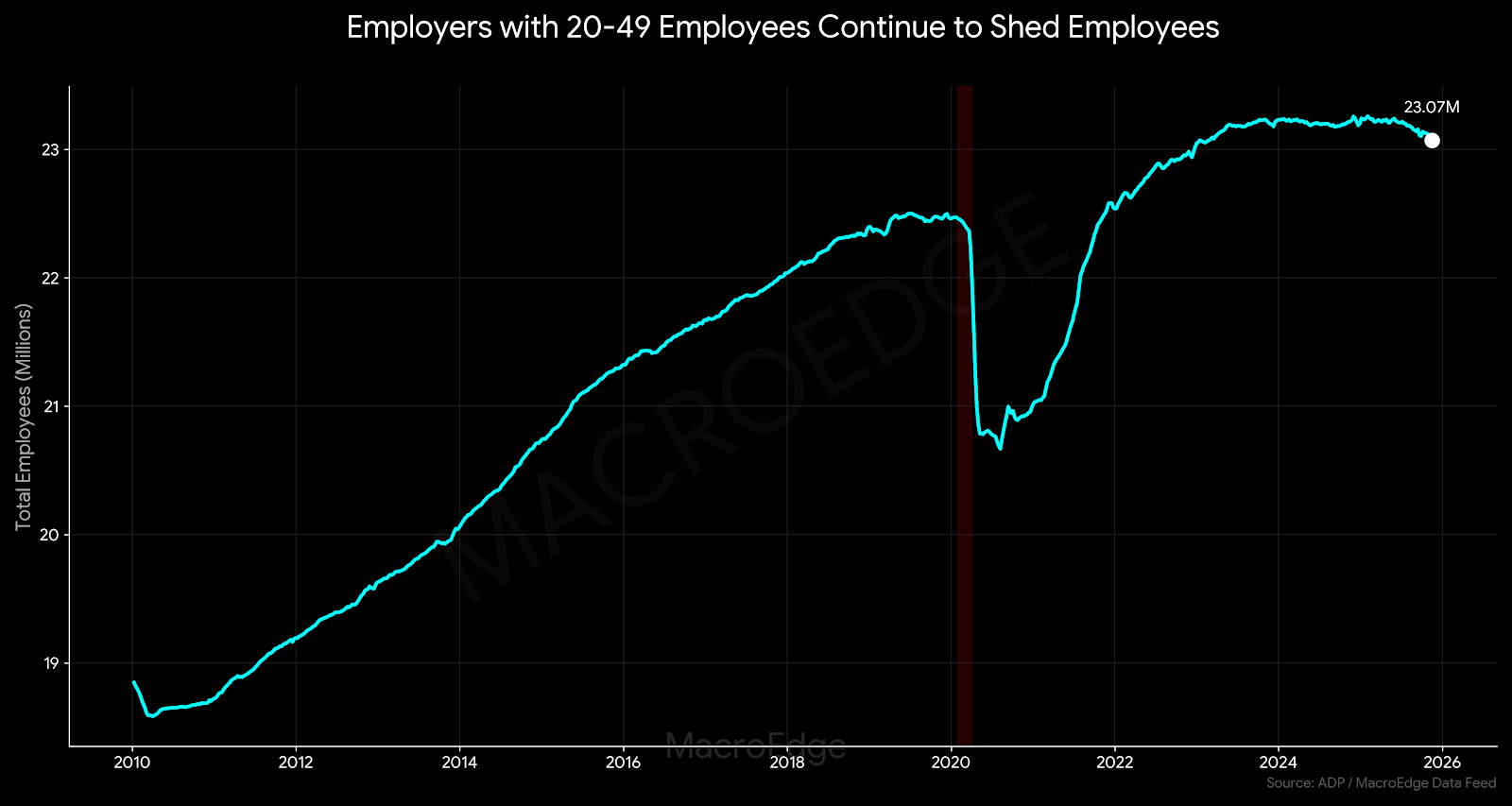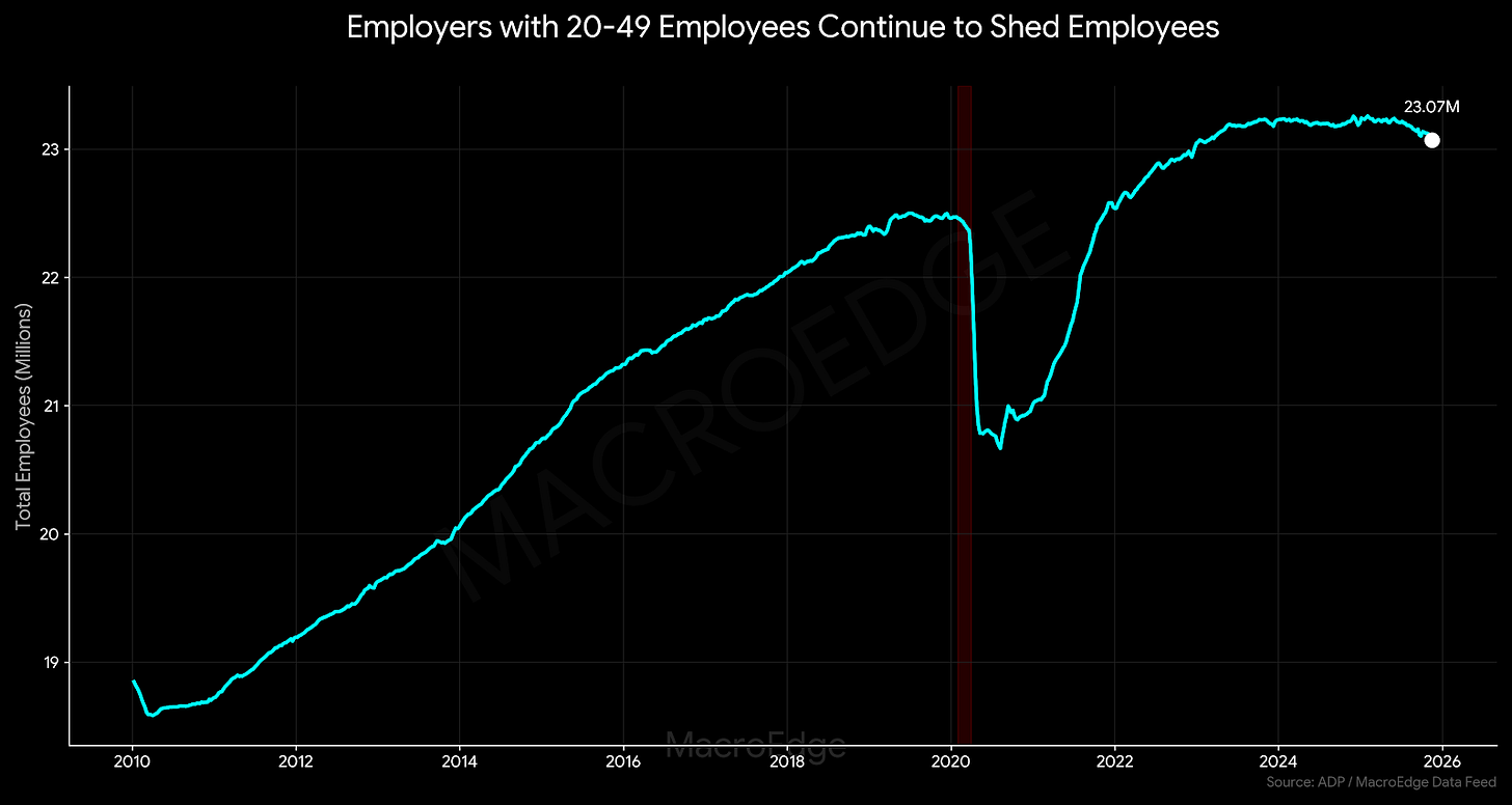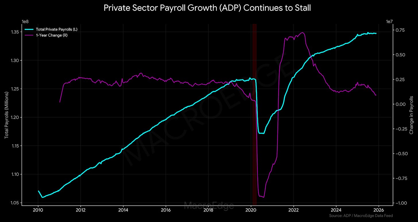 Tonight we’ll dive into a brief Midweek Macro Note - covering some of the high frequency data from the week thus far, and look at our expectations for the Thursday & Friday employment data, which is likely to continue to track in line with the trend we saw through the entirety of 2025. While equities have shown little care for a softening labor market, the Fed has shown much more interest in the deteriorating conditions, pushing rates lower (and we’ve also observed the short end dropping concurrently).