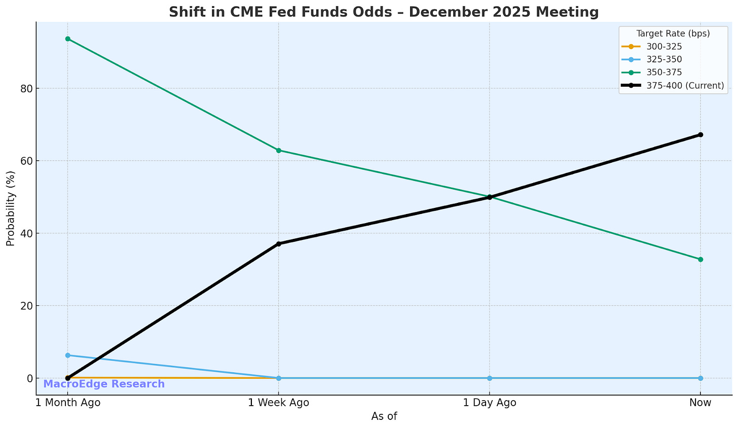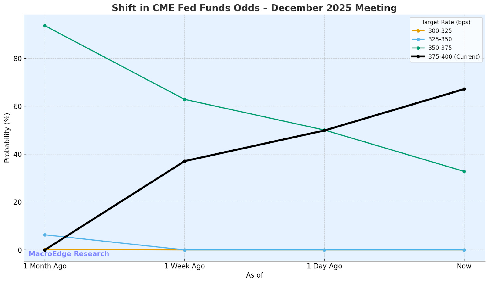 On Friday, we’ll see the NFP / payrolls for September, which I personally think will be quite useless in its pre-revision state. Nonetheless, it will weigh into the December rate cut decision, and this is the last labor data (payrolls-wise), we’ll have before FOMC. Today, the BLS announced that the October data was cancelled, and November data was pushed behind the FOMC date in December, which caused rate cut odds to fall for December rather sharply.