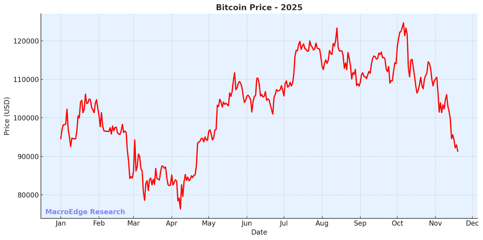 Which is now negative on the year, and has largely been sideways for the entire year. The big spike in October, driven by a bizarre *deal* with the Chinese, was quickly sold, and this asset remains our best real-time financial conditions index. The Balanced Price metric from Glassnode that we utilize remains in the mid-40s.