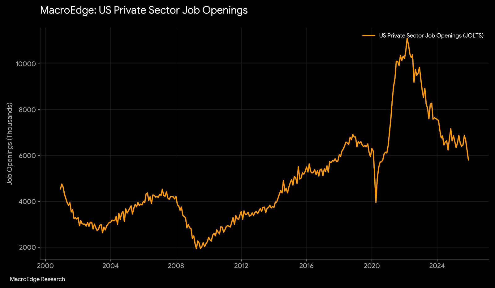 Job openings highlight a labor market that is in trouble, with private sector job openings continuing to plummet: